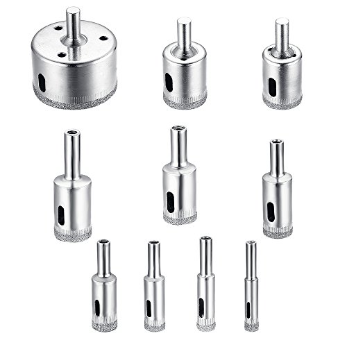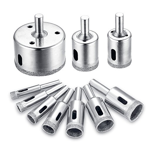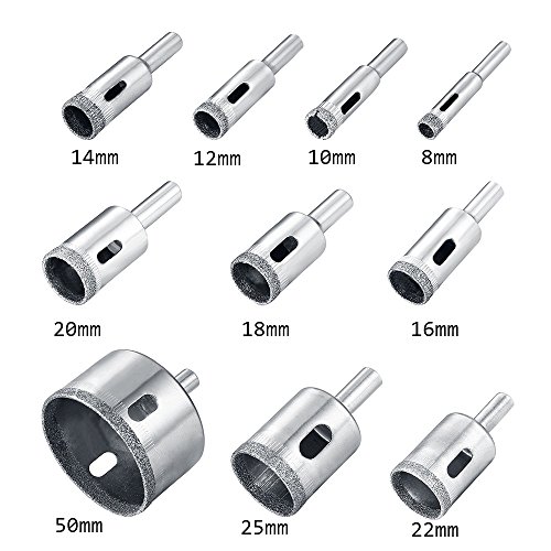 10Pcs Diamond Drill Bit Set, 8-50mm Glass Tile Hollow Core Extractor Remover Tools Diamond Hole Saw for Glass Ceramics Porcelain Ceramic Tile by Jelbo