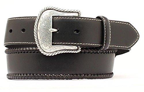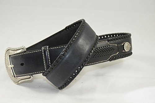 Product DescriptionEnjoy comfort and durability from this men's Nocona belt. Black leather belt features 2 silver conchos with lacing on the edges. Silver buckle.0