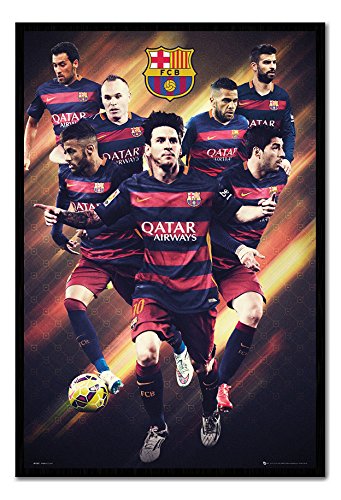 -. Title : Barcelona Players 2015/16 Season Poster Magnetic Notice Board Black Framed - 96.5 x 66 cms (Approx 38 x 26 inches)