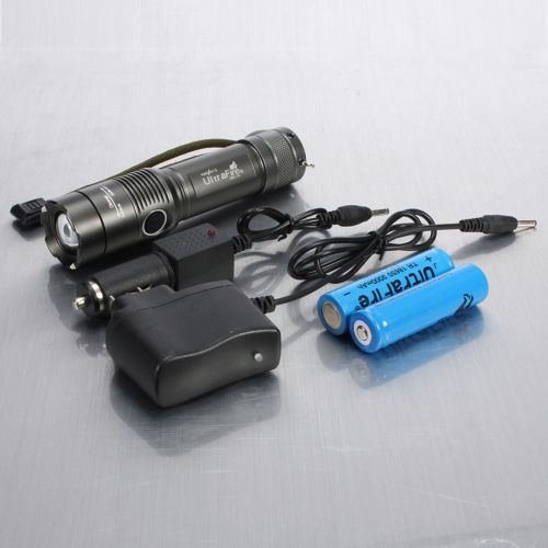 - Feature : Features: 100% Brand New CREE XM-L T6 LED Adjustable Focus Torch Internal wiring applies the high efficient booster circuit, working voltage is wide and can utilize the batteries in the largest extent. Environment: everyday carry, camping, hiking, night riding, caving, hunting Outdoor Projects: fishing, driving, hiking, camping. Convenience carry SuperBright, blinding Effect Specification: Brand name: Ultrafire Model of LED: CREE XM-L T6 LED Output brightness : Can come to above 3000 lumens [lm] Life span:100,000 hours Waterproof but not means it can be used in water. Material: High quality 6061T Aluminium Alloy 3 Switch Mode: high / low / strobe Adjustable focus range for different usage : Zoom In/Out to adjust its Focus: x1, x250, x500, x1000, x2000 Model of Battery required: 1 x 18650 Battery 3.7v / 3 x AAA Battery Size : 135mm x 30mm(Head Dia)/28mm(body) Color : Gray Weight : 125g AC Charger: LED indication for Power On / Charging / Full charge Input: AC100-240v (World Voltage) DC Car Charger: LED indication for Power On / Charging / Full charge Input: DC12V 18650 3.7v Rechargeable Battery Suitable for Flashlight Torch Capacity: 3000mAh Voltage: 3.7V Color: Red/ Blue ( Random Color) Package Contents: 1 X CREE XM-L T6 LED Zoomable Flashlight 1 X 3AAA Battery Holder 1 X 18650 Battery Holder 1 X AC Wall Charger 1 X DC Car Charger 2 X 18650 Battery (Blue/Red)