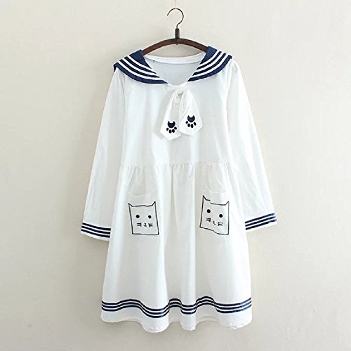 -. Feature : メイン素材:コットン / カラー:ホワイト .ネイビー / 猫サイズ: 着丈:88cm 肩幅:34cm バスト:96cm 袖丈:24cm 裾幅:180cm / サイズ:着丈:86cm 肩幅:36cm バスト:92cm 袖丈:55cm ウエスト:92cm / ※サイズは平置き採寸となりますので多少誤差が生じます、予めご了承ください