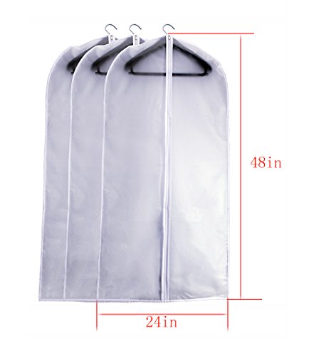 -. Feature : CLEAR: You can early find out your clothes without opening the garment bags / BE ORGANIZED: A new clothes for your beautiful clothes, make your closet be organized / FIT LONG COATS: Its size is 24''×48'', perfect for suits, shirts, trousers, tops,dresses,dance clothes, sport coats and so on / BE HAND WASHED: The garment bags are made of vinyl acetate material, so it is clear, breathable, healthy and can be hand washed / DUST PROOF: The garment bags can keep dust, hair, mildew, water and wrinkles away from your beautiful clothes, also can hold your clothes clean, tidy and fresh