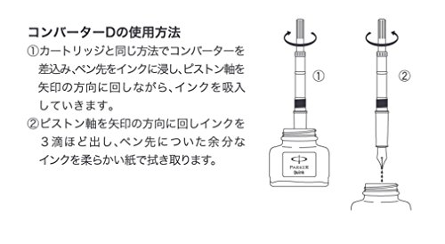 - Feature : Choose between the noble ritual of bottle-filling, or the convenience and practicality of cartridges. / Added lubricity to let pen glide smoothly across paper. Resists fading while it protects pen. / Parker Quink inks are specially designed and formulated to the most exacting standards to ensure that Parker products deliver faultless performance. / Limited warranty guarantees product for 2 years from date of original purchase against defects in materials or workmanship.