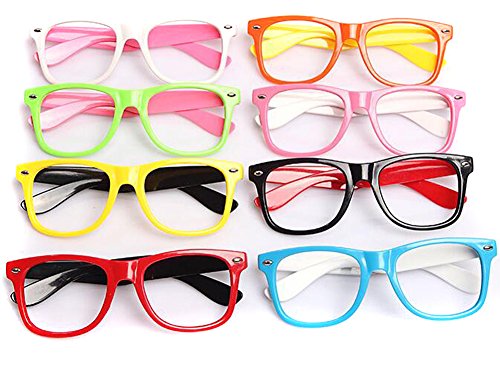 Set of 6 Kids Children Candy Colour Fashion Cute Glasses Frame Without Lenses Nerdy Retro Glasses Party Supplies (Colour Random) (B#)