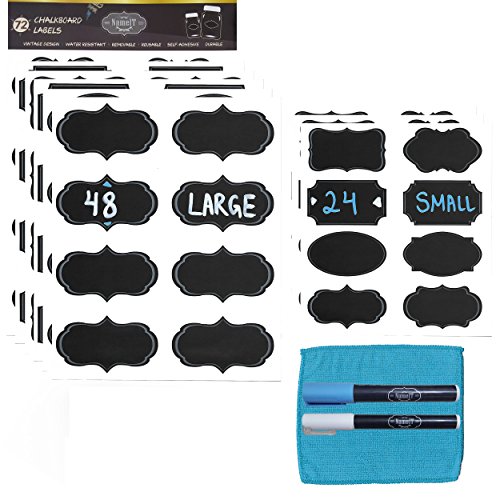 Chalkboard Labels Bundle- 72 Reusable Premium Stickers With 2 Erasable Chalk Markers, Fiber Cloth and Digital Guide | Small and Large Labels For Jars, Pantry Storage, Office and More By NameIT