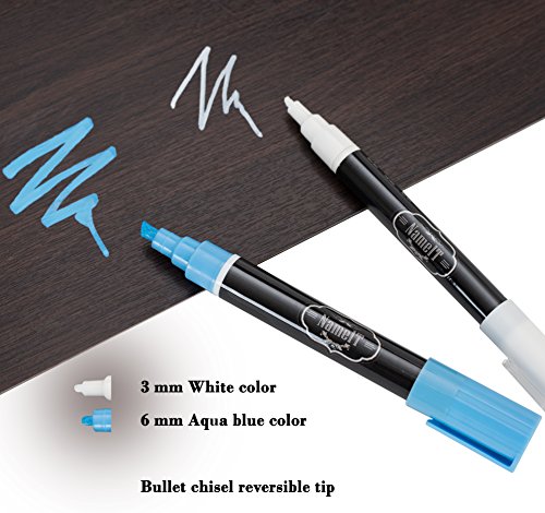 ★ UNLEASH THE LITTLE PICASSO IN YOU: No chalkboard label set could be complete without a pair of two dazzling, Aqua Blue and White chalk ink markers! These two markers are ASTM, EN71 and MSDS certified, contain top grade water-based ink that is easily erasable with our sleek fiber cloth. and a reversible tip for both bold and fine line artwork! The water based ink is 100% BPA-FREE and 100% SAFE for human skin. This also makes our products safe for kids! (ages: +3)