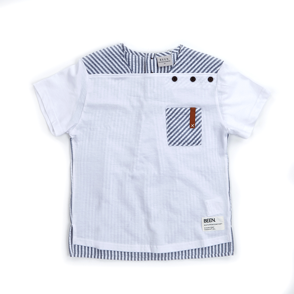 깔끔하고 세련된 스타일의 화이트 반소매 티셔츠입니다.