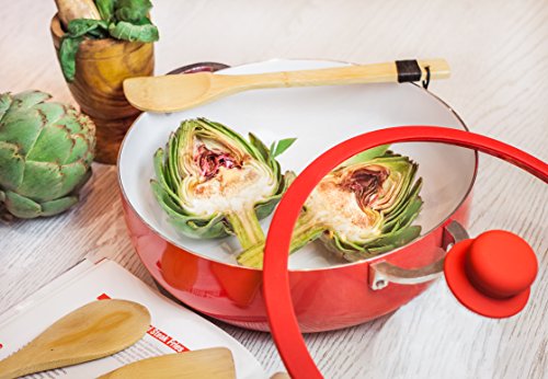 Bring some trend and color into your kitchen with the new IMUSA Ceramic Caldero. These new PFOA & PTFE-free pans allow you to embrace a healthier approach to cooking, all while maintaining a superior nonstick surface that requires minimal oil or butter. The unique white ceramic interior offers a smooth & uniform cooking surface, making it easier to monitor your food as it is cooking and makes clean-up a breeze!Feature