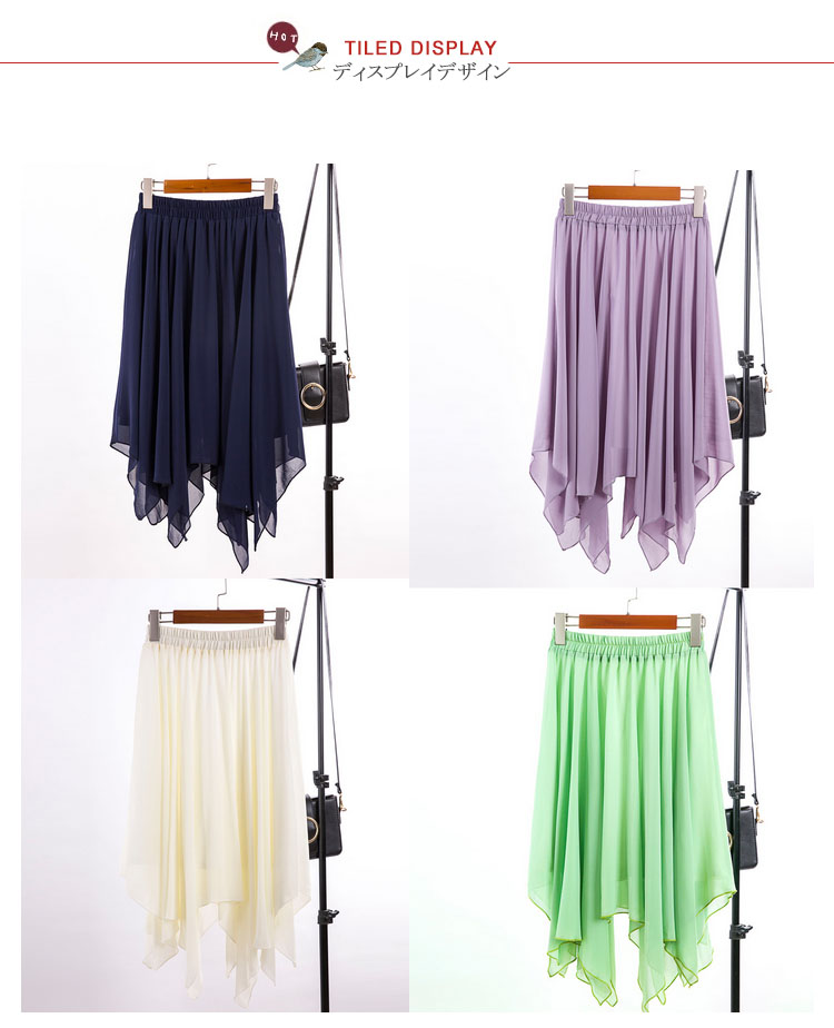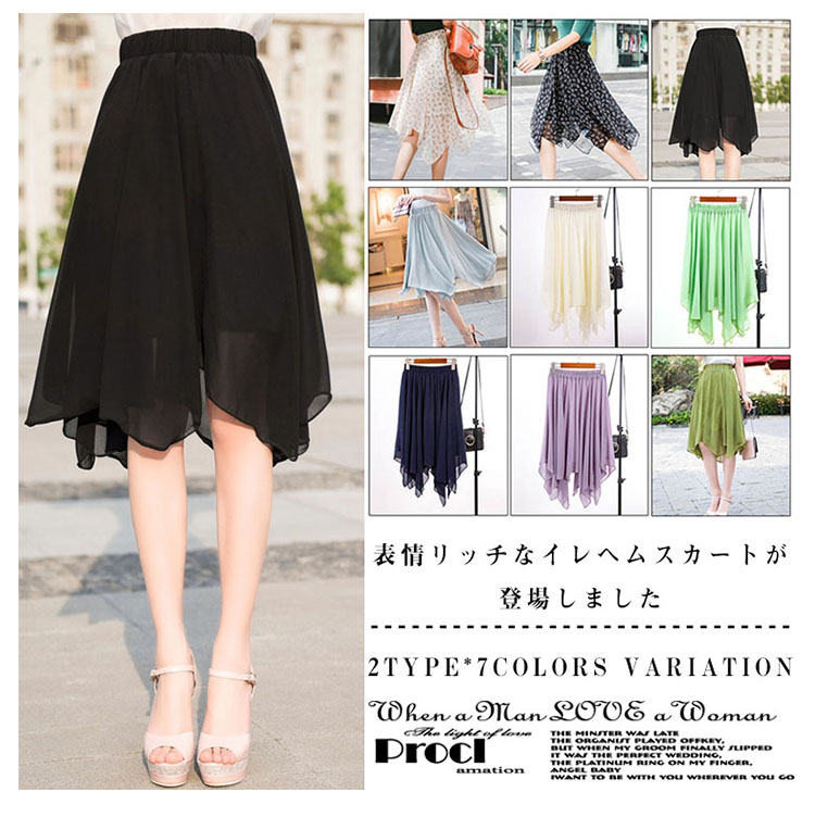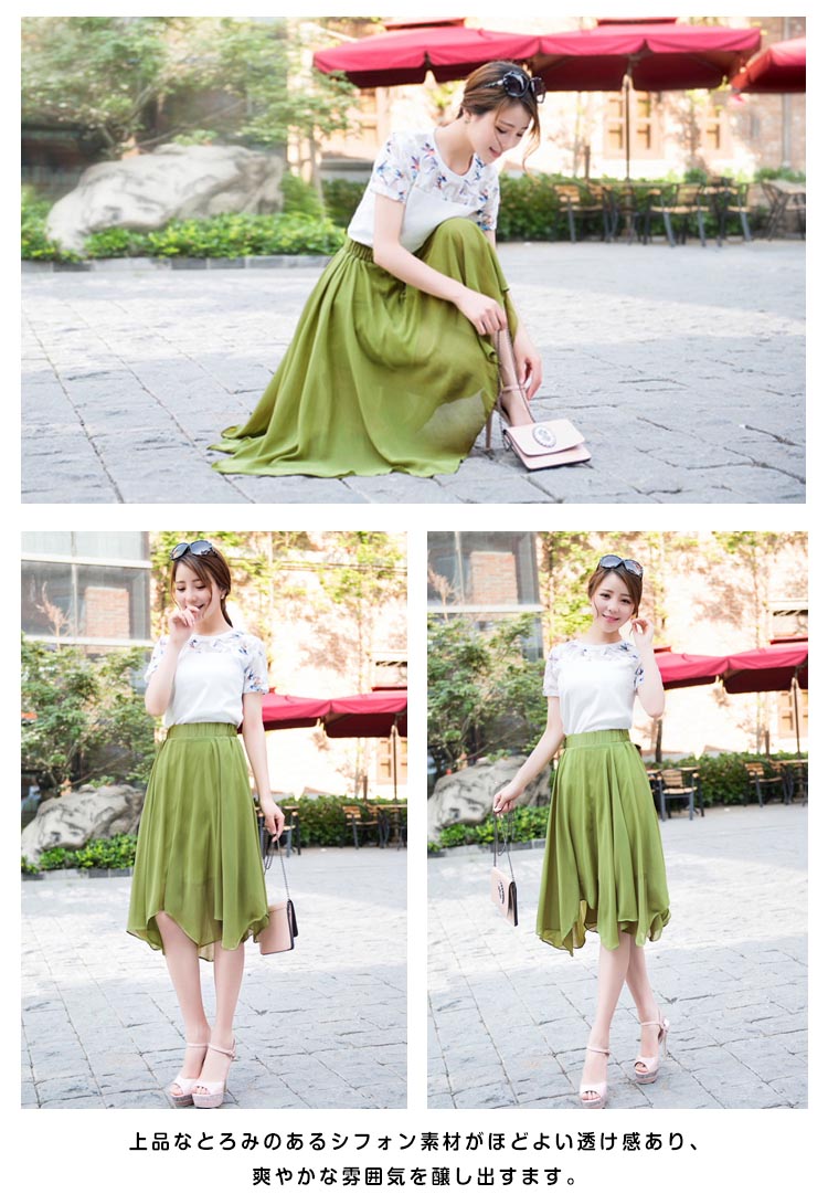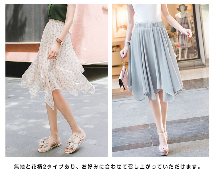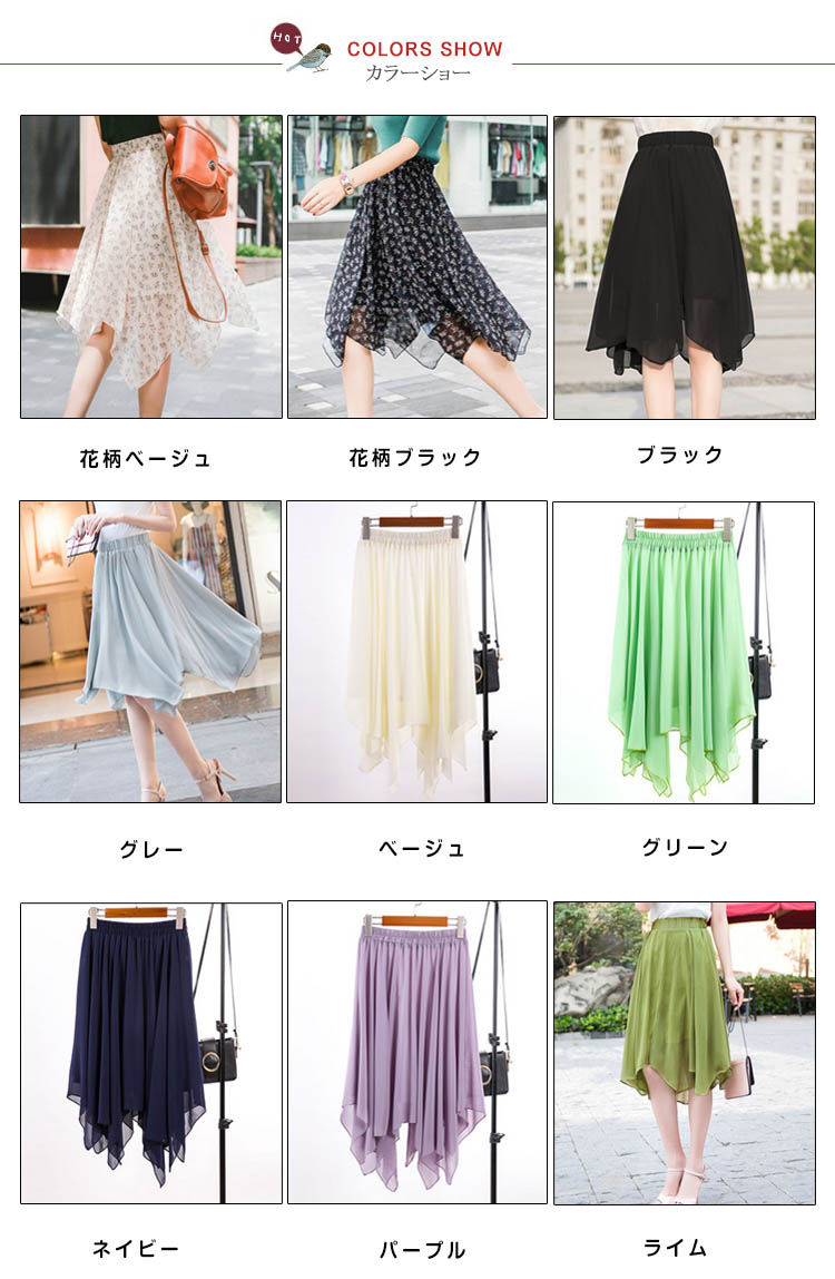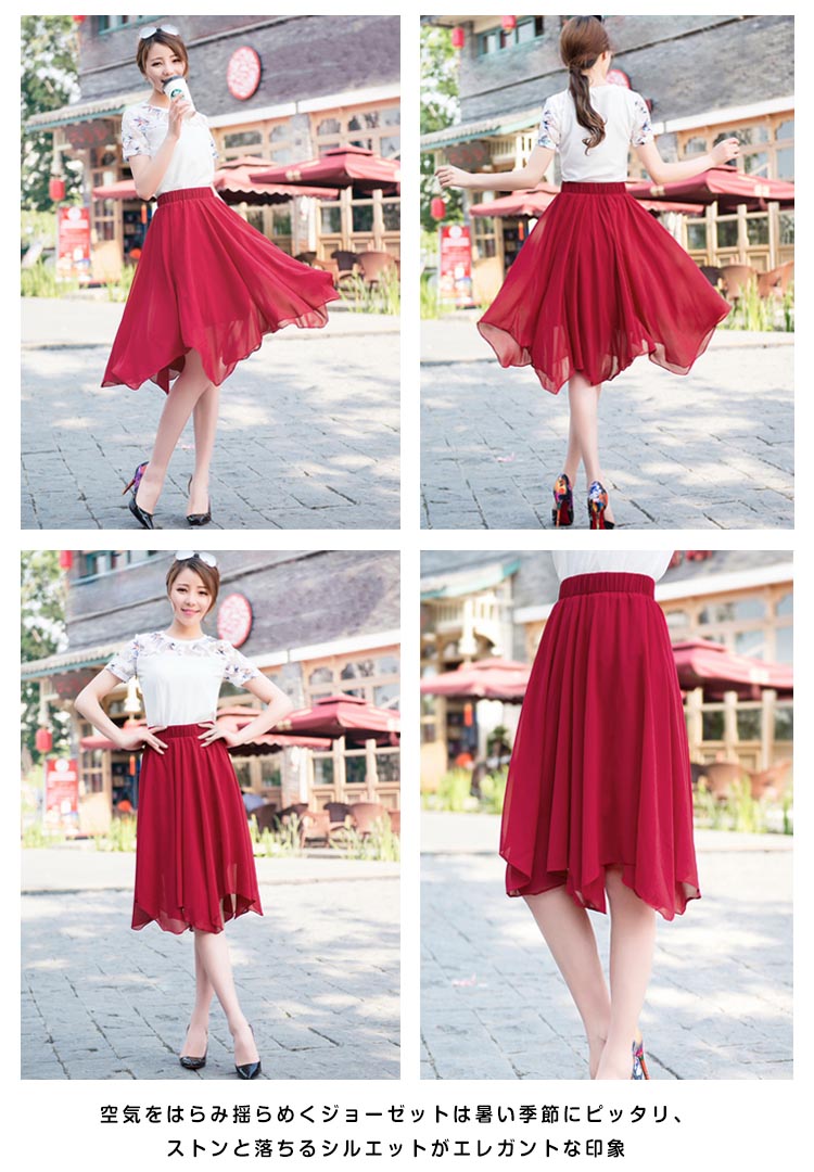 | 表情リッチなイレヘムスカートが登場しました空気をはらみ揺らめくジョーゼットは暑い季節にピッタリ、ストンと落ちるシルエットがエレガントな印象上品なとろみのあるシフォン素材がほどよい透け感あり、爽やかな雰囲気を醸し出すます。サラっと肌触り滑らかな裏地付きで着心地も抜群 | |