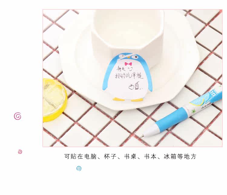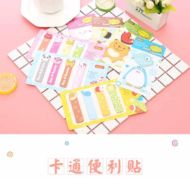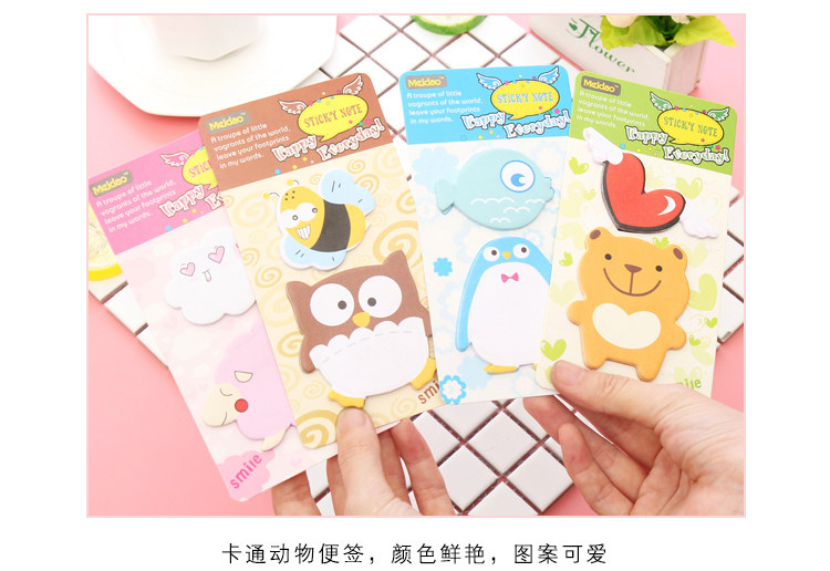 创意可爱动物标签贴卡通记事贴便签纸便利贴手写自粘彩色