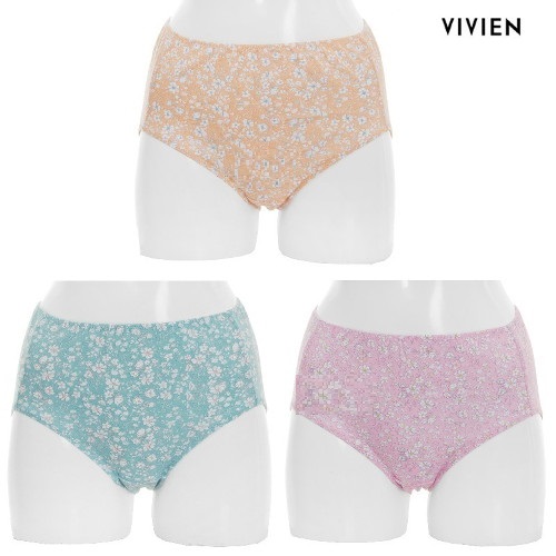 화사한 컬러감의 잔꽃나염 제품으로, 넉넉한 밑위감으로 편안하게 착용할수 있는 부인용팬티입니다~