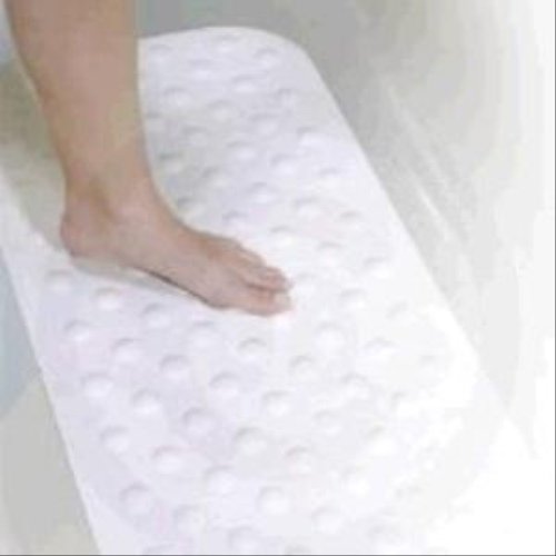 Studio : drive Publisher : drive Binding : Kitchen Product Description Drive Medical's bath mat holds securely to your tub with multiple suction cups, allowing for a slip-free bathing experience. The bath mat provides a large and secure surface area in the tub. Its soft rubber mat is as easy to clean and can be rolled up for storage. This product also features a contour cut out specifically designed to fit around your drain. ||Number of Pieces: 1 ||Material: Rubber ( 100,%) ||Backing Material: Rubber ||Size: 35.500L x 15.750W ||Weight: 2.400 ||Imported 0