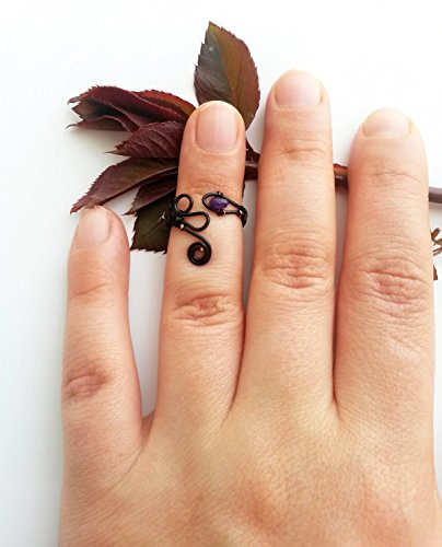 -. Brand : guruMIme -. Color : Purple -. Department : womens -. IsAdultProduct : 0 -. ProductGroup : Guild Product -. ProductTypeName : GUILD_JEWELRY -. Title : Gothic knuckle ring - Midi ring Filigree ring Purple jade ring Black ring Knuckle ring Jade jewelry Statement ring Copper wire ring