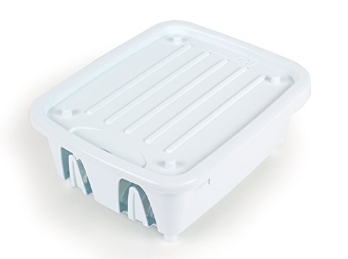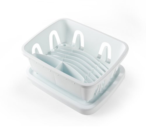 Camco RV Mini Dish Drainer & Tray fits RV sinks, and is sized just right for limited counter space. Sloped drainer tray keeps counters dry. Drain tray snaps on top of rack for handy storage. Durable heavy-duty construction.
