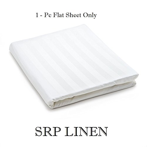 Sale 1000 Thread Count 1-Piece Flat Sheet/ Top Sheet California King Size White Striped Egyptian Cotton, Made by SRP LINEN
