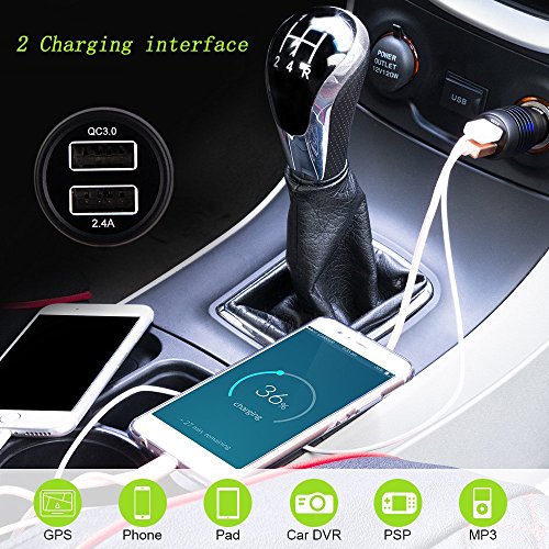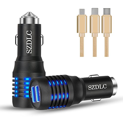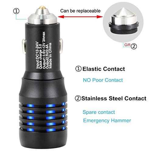 QC3.0 Car Charger Dual USB Mini Portable Quick Charger PowerDrive+ 2 Blue Led lights Stainless Steel Emergency Escape Hammer Cutter for iPhone 8 Plus X Samsung S8 S8+ S7 Edge With 3 in 1 Cable