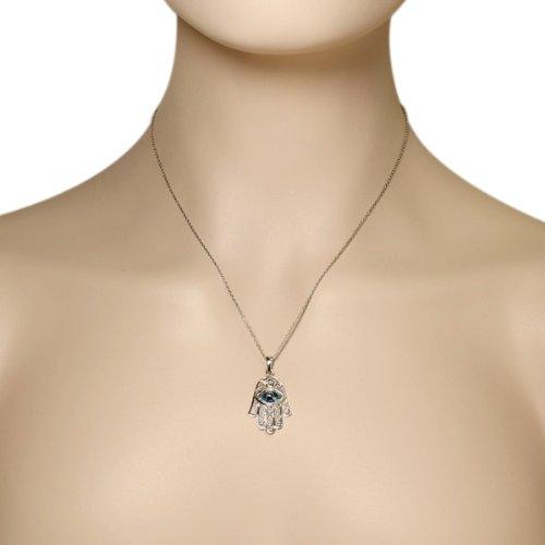 -. Title : 925 Sterling Silver Evil Eye Hamsa White Blue CZ Filigree Womens Pendant Necklace