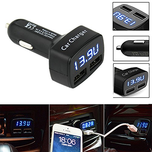 -. Feature : HIGH QUALITY: Quality guarantee,100% brand new and high quality / OVER-CHARGE PROTECTION :The car charger features auto power off when the input and output current is greater than safety current. It protects the charging devices from Over-Charge and over- Current / FAST DUAL USB CHARGING PORTS:Combined 3.1 amps; 15W; uses smart technology to ensure each device pulls the right amperage. Charger is powered by the vehicle's cigarette lighter. / COMPATIBLE WITH:Most IOS Android Windows Smart Cell Phones, GPS, Tablets, and Other USB-charged Devices, Note 5 4 Tab S, LG G6 G5 G4, HTC, Nexus 5X 6P, iPads Pro / LED DISPLAY: LED digital luminescence tubes,display cycles between internal temperature (Fahrenheit), device's charging current, and the voltage of the vehicle's car battery.The LEDs are bright enough to read the display without being a distraction while driving. (Note: When using the device to charge, it display the charger's temperature instead of the internal temperature of your car. )