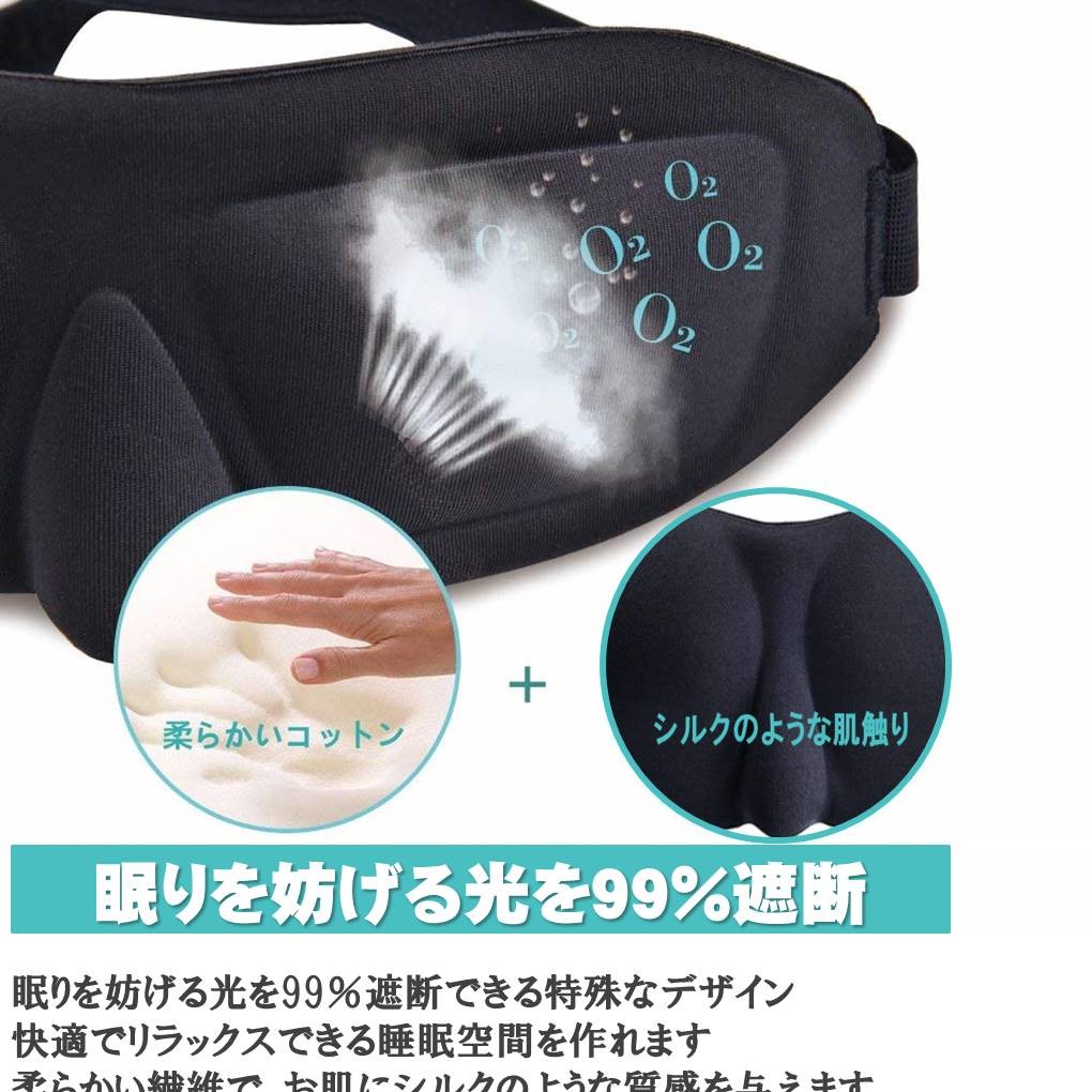 目や鼻の形に合わせた3Dデザインの為 目の周りに空間があり締めつけも調整できるため 目や顔への圧着感が少なく