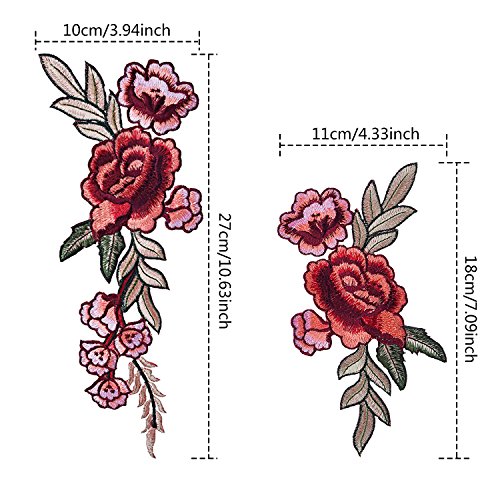 - 2 Different size: 2 pieces each size, the large floral patches size is about 27 x 10 cm/ 10.63 x 3.94 inch (L x W), the small one size is about 18 x 11 cm/ 7.09 x 4.33 inch (L x W)