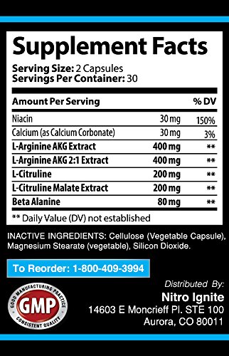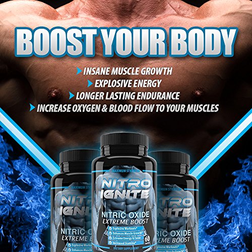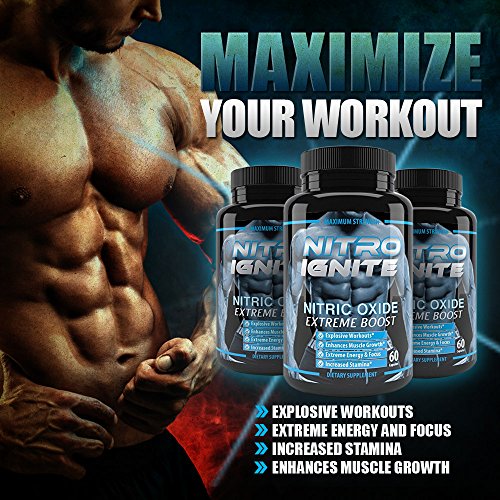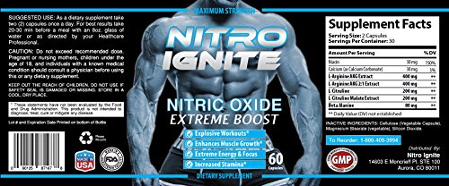Nitro Ignite - Nitric Oxide Extreme Boost for Enhanced Muscle Growth Energy & Focus, Increased Stamina & Explosive Workouts - Maximum Strength 60 Capsules - 1 Month Supply