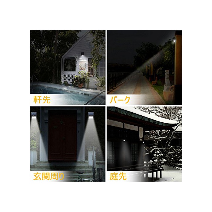 【방수 내열】방수 등급은 IP64이기 때문에,옥외에서 대활약합니다.현관 주위나 툇마루 쪽,처마 끝,가든,주차장 문짝 모노오끼(가정용품을 보관해 두는 조립식 창고) 개러지나,사무소 점포 창고 공장 등 여러가지 그런데 쓸만합니다.항상,라이트와 솔라 패널이 완전히 보호 된 디자인에,젖음(정사/연애/호색) 걸레에 간단하게 청소에 옵니다.