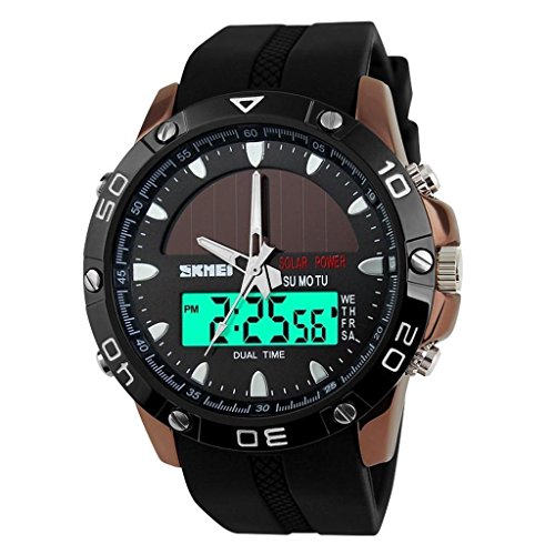 TTLIFE 맨즈 손목시계 쿼츠 손목시계 솔라 다기능 아웃도어 아날로그 - 디지털 디스플레이 스포츠 워치 50M 방수 손목시계 자명종 LED 캘린더