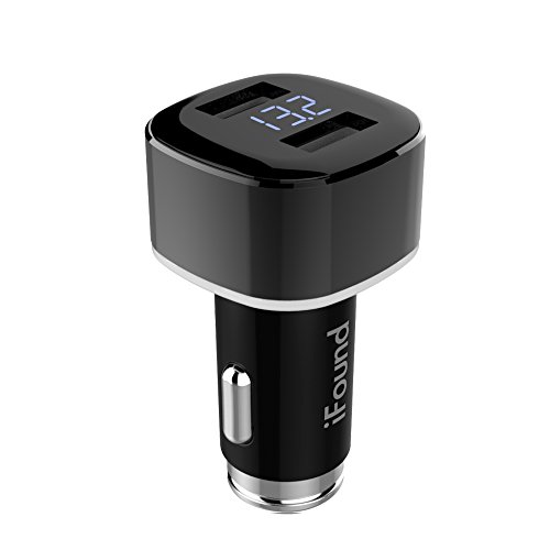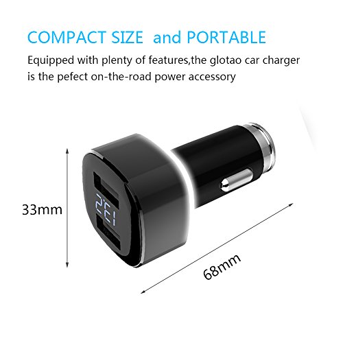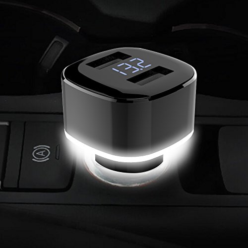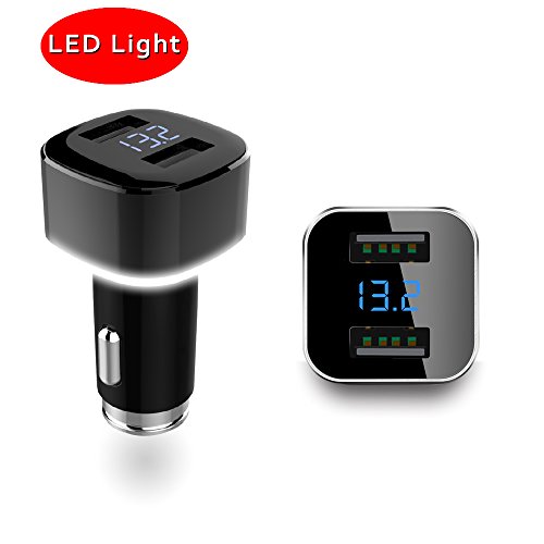 Dual Ports Car Charger,LED Display Voltmeter Car Charger Adapter with LED Light for iPhone 7 6S Plus 6 Plus 6 5SE 5 5C Samsung Galaxy S7 S6 Edge Note 5 4 S5 Tab S LG G5 HTC iPads Pro Portable Black