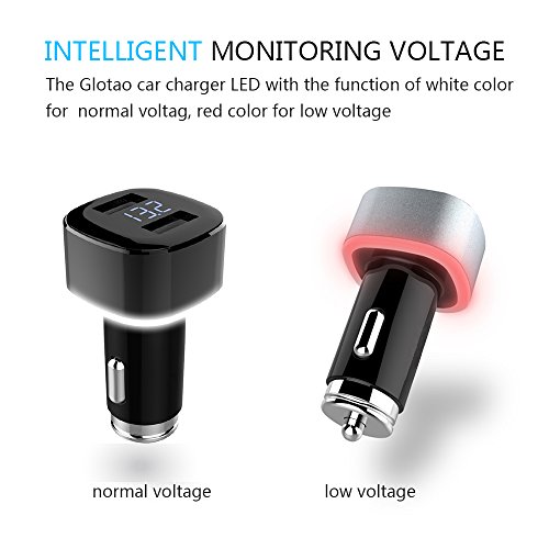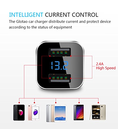 Intelligent Circuit: The G27 car charger shows the input current. Glotao intelligent circuit protects against short circuiting, over-heating, over-currents, and over-charging.