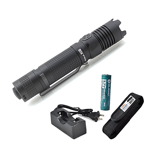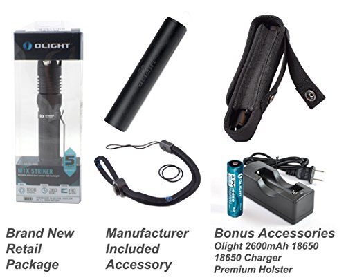 Rechargeable Bundle: Olight M1X Striker 1000 Lumens LED Flashlight, Genuine Olight 18650 Battery, LumenTac Recharger and Pouch