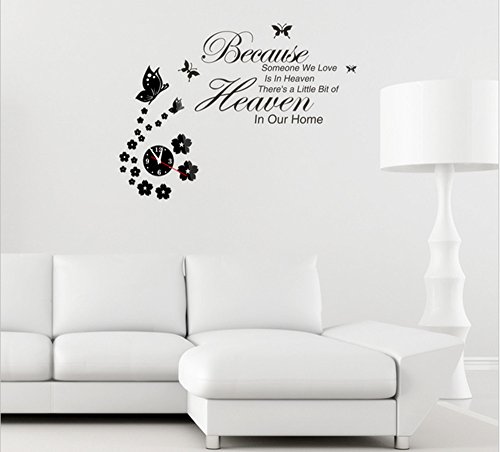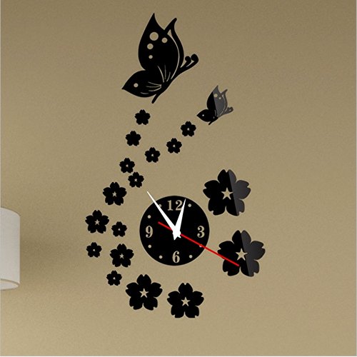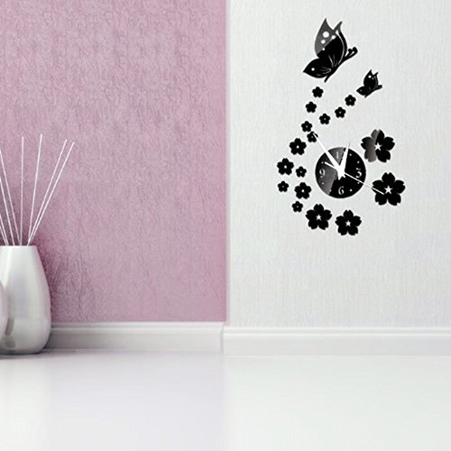 -. Title : Removable DIY Acrylic 3d Mirror Wall Decal Beautiful Butterfly and Flower Clock Wall Sticker Home Modern Decoration