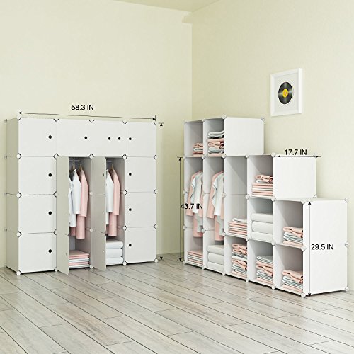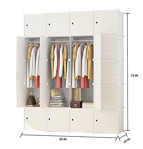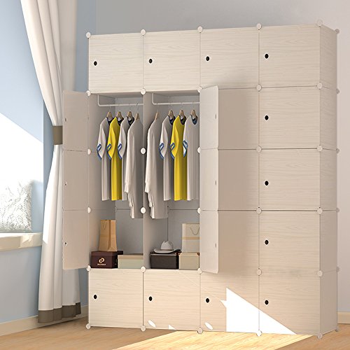 MEGAFUTURE Wood Pattern Portable Wardrobe for Hanging Clothes, Combination Armoire, Modular Cabinet for Space Saving, Ideal Storage Organizer Cube for books, toys, towels (20-Cube)