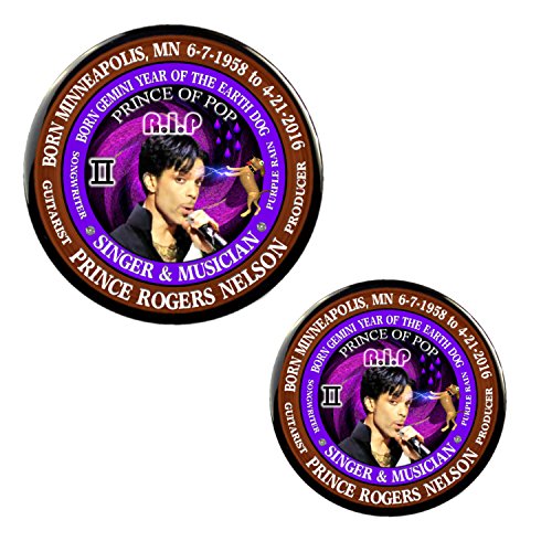 Product DescriptionPrince Of Pop Born 6-7-1958 Gemini Earth Dog 2.25" Button-with pin back. Prince Rogers Nelson RIP Rock-N-Roll Memorial buttons0