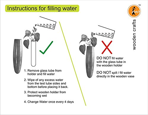 USAGE : This item comes with a removable glass tube inside. Fill the glass tube provided with water and allow your plant to grow in it right inside your home or office. Suitable for plants that grow with roots in water - Money Plant, Wandering Zebrina, Lucky Bamboo NOTE : Plant is not included IMPORTANT: Protect the wooden vase from getting wet. DO NOT pour water directly into the wooden vase..