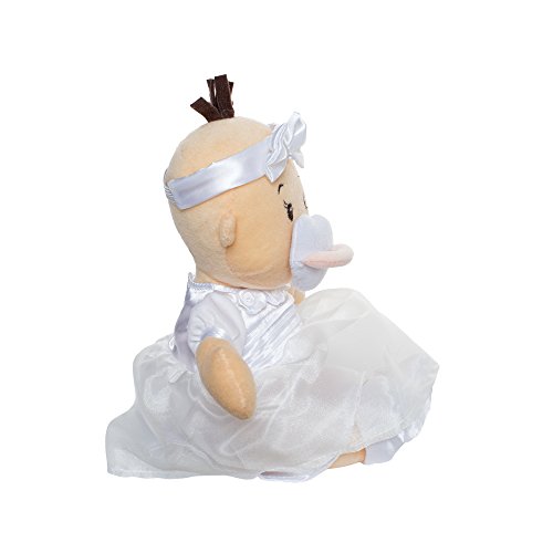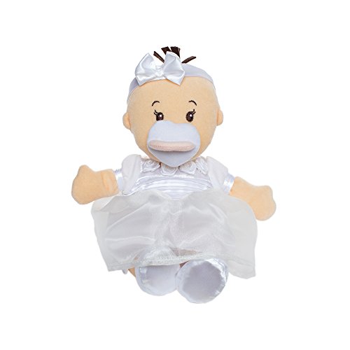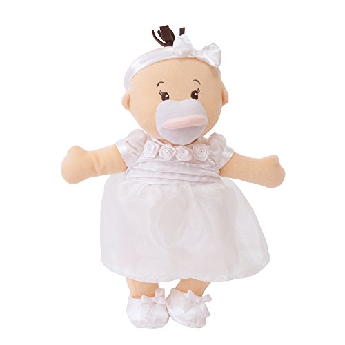 Includes an ultra soft 12" baby doll with cute, embroidered facial features, a soft tuft of fleece hair, and a pacifier that attaches magnetically