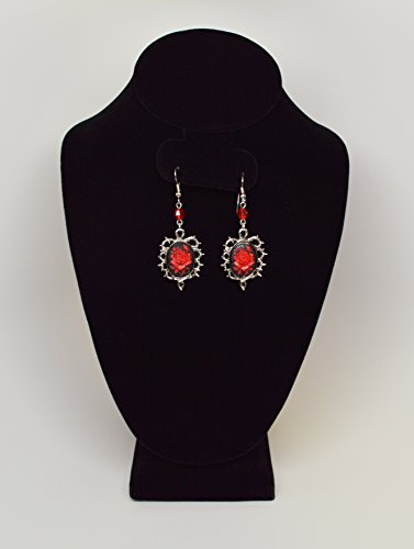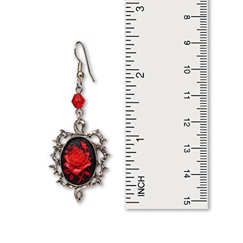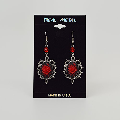 Real Metal Gothic Rot Rose Ohrringe Cameo Umgeben Von Dornen Mit Rot Bead