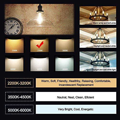 Bulb type:ST21(ST64) Base type:E26 Wattage:12W Bulb Features: Dimmable Incandescent equivalent:100W Voltage : 120 volts Luminous Flux : 1200 Lumen Color Temperature:2700k(Warm White) Color Rendering Index(CRI):80 Life Span: Average 30000 Hours Lifespan. Mercury-free,No UV,No Hum,No Flicker,CE and RoHS Authenticate Mercury-free,No UV,No Flickering,CE and RoHS Authenticate Recommended Appliance:Homes Living Dinning Rooms Lobbies Hotel Rooms Restaurants Residential Commercial Decorative Lighting, etc.