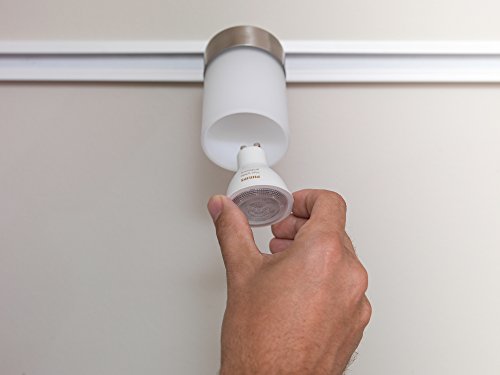 Throughout your day, the Philips Hue White Ambiance GU10 Dimmable LED Smart Flood Light changes how you light your moments at home. With wireless control on your smartphone or tablet, choose the perfect light setting for any mood or activity such as reading or relaxing, concentrating, or energizing. Requiring the Hue Bridge (sold separately) for the full Hue experience, this GU10 LED smart flood light is designed to fit track lighting and chandeliers. Install the LED light as you would install ordinary bulbs, pairing them with the Hue Bridge, which allows you to control smart-bulb-equipped lights via the Philips Hue App. Easily expand your smart lighting system with Hue accessories (sold separately), such as a dimmer switch, tap, or motion sensor. Pair it for automation with your existing Nest or Samsung SmartThings system. This box includes one Philips Hue white GU10 light bulbs, manual, and two-year warranty.Feature