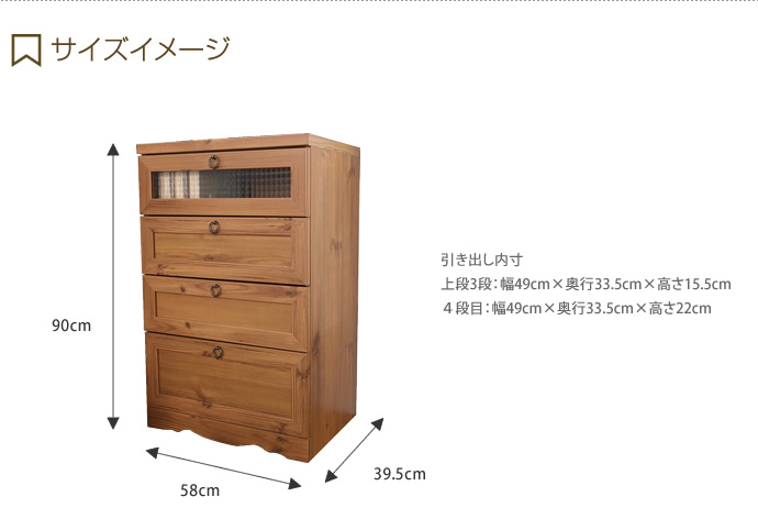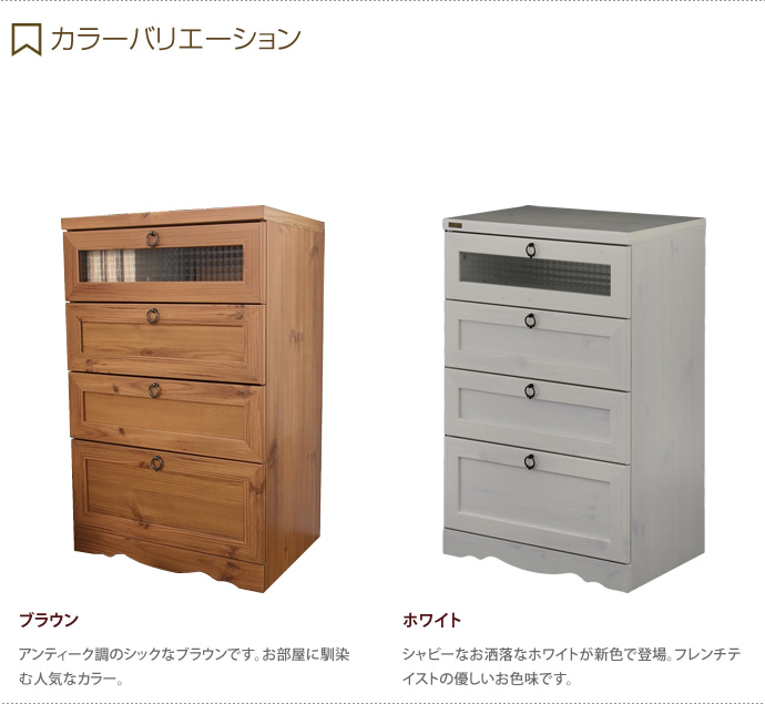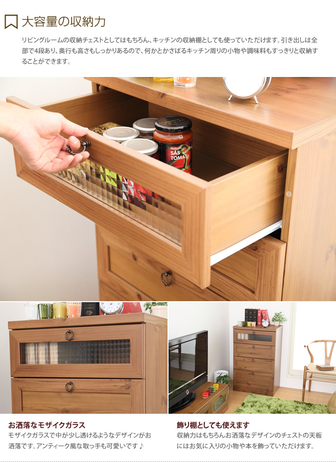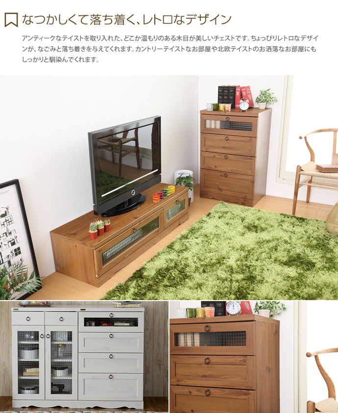 アンティーク調でちょっぴりレトロ、あたたかみのある家具シリーズの「LE BISTRO アンティークチェスト」。