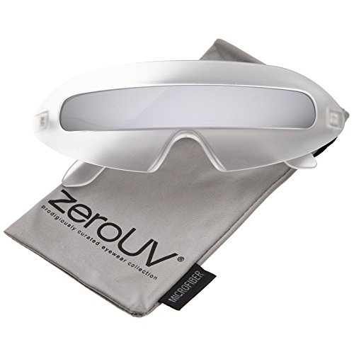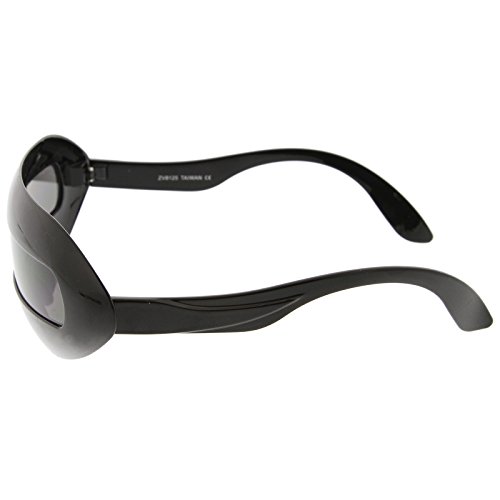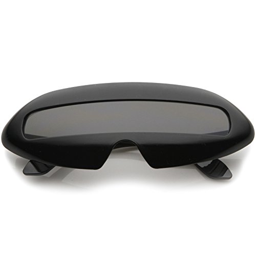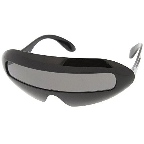 Create an out of this world look with these futuristic inspired sunglasses. Designed with a large wrap around style frame and a single shield lens, these bold sunglasses are sure to catch anyone's attention. Complete with a glossy finish and unique curved temples, these shield sunglasses are a great addition to our novelty collection. Perfect for parties or futuristic costumes. Made with a plastic based frame, metal hinges and polycarbonate UV400 protected shield lens. Lens Height: 22 mm | Lens Width: 70 mm | Bridge: 20 mm | Frame Total: 163 mmFeature