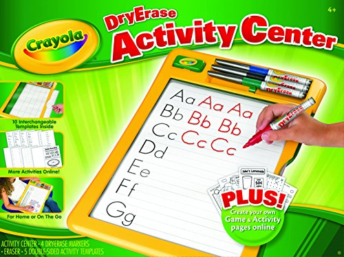 Play, practice, and have fun over and over again with this unique dry-erase board! The Crayola Dry-Erase Activity Center has a clear writing and drawing surface that allows you to slide blank or pre- printed template cards underneath the window for lots of learning and fun! This package contains 1 dry-erase activity center, four low-odor dry-erase markers, 1 eraser, five double-sided activity templates, and 1 ideas and instruction sheet. Conforms to ASTM D 4236. Recommended for children ages 4 and up. WARNING: CHOKING HAZARD-Small parts. Not for children under 3 years.Feature