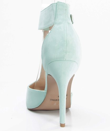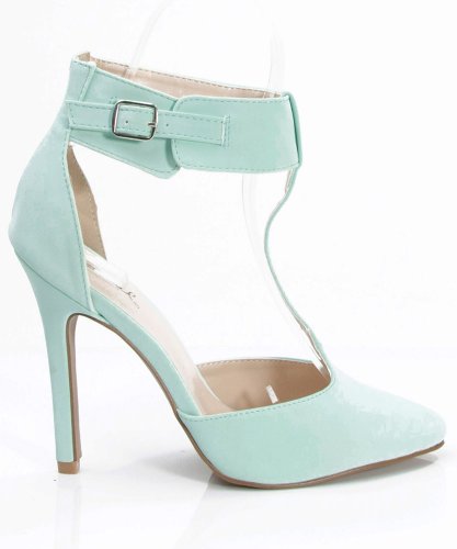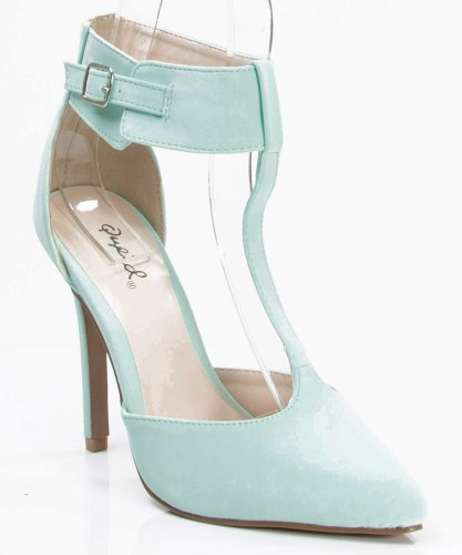 Product Description Accentuate the springtime hues with these classic pointy toe pumps! Featuring a pointy toe front, t-strap construction at vamp, adjustable buckle strap closure, stiletto heel, stitching accents, and a lightly padded insole. 0
