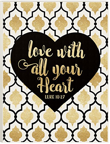 Love with All Your Heart Luke 10:27 16 x 12 inch Glitter Sparkle Wood Wall Sign Plaque