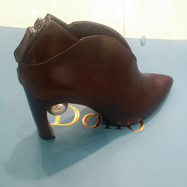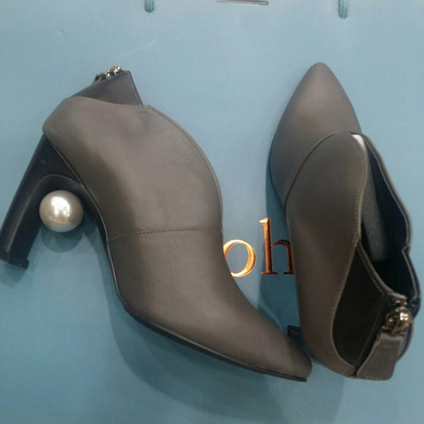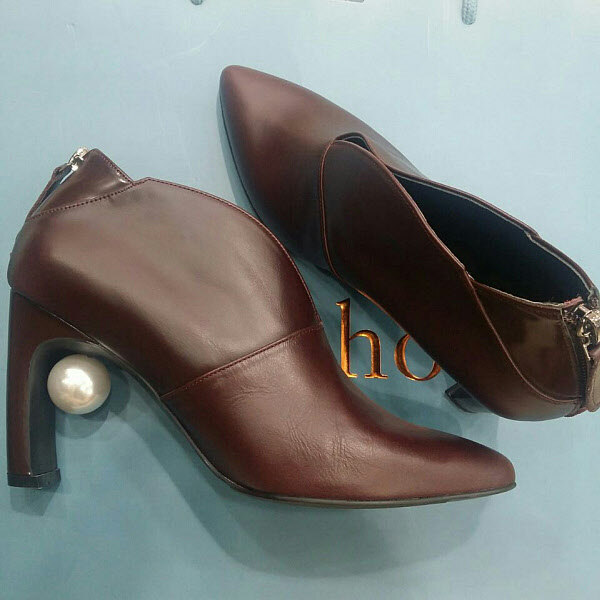 굽안에 큰 진주 장식이 달린 100%소가죽의 앵클 부츠 입니다굽의 높이는 앞 굽 1.5cm,뒷 굽9cm입니다