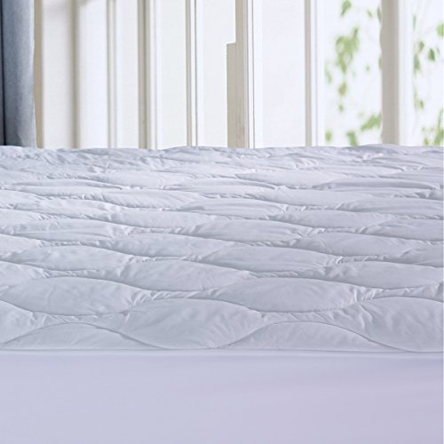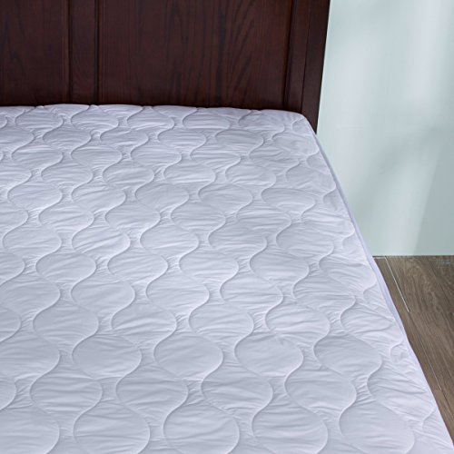 -. Brand : Home Elements -. Feature : There are three size / 200 thread count top fabric, 50% cotton and 50% polyester / Super stretch skirt fits mattress up to 18in deep / Double needle holds fill firmly in place / Machine wash and dry -. Label : Home Elements -. Manufacturer : Home Elements -. ProductGroup : Home -. ProductTypeName : HOME_BED_AND_BATH -. Publisher : Home Elements -. Studio : Home Elements -. Title : Home Elements Classic Down Alternative Mattress Protector/Pad, Quatrefoil Pattern Top, White