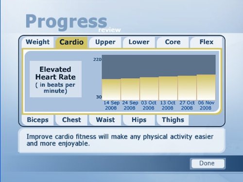 -. Binding : Video Game -. Brand : Ubisoft -. EAN : 0008888175940 -. Edition : Standard -. ESRBAgeRating : Everyone -. Feature : Personal virtual trainer demonstrates moves, gives advice, and provides motivation / Access almost 80 exercises for losing weight, lowering your cholesterol, and getting ready for swimsuit season / Personalized goals let you chose length and frequency of program on a calendar / Customize your environment and pick your favorite type of workout music / Personalized healthy meals: Over 130 recipes built around your specific needs that will fit within your workout plan. Weekly menu and shopping list included. -. Genre : sports_and_outdoors_games -. HardwarePlatform : Nintendo Wii -. IsAutographed : 0 -. IsEligibleForTradeIn : 1 -. IsMemorabilia : 0 -. Label : UBI Soft -. Manufacturer : UBI Soft -. Model : 17594 -. MPN : 17594 -. NumberOfItems : 1 -. OperatingSystem : Nintendo Wii -. PackageQuantity : 1 -. PartNumber : 17594 -. Platform : Nintendo Wii -. ProductGroup : Video Games -. ProductTypeName : CONSOLE_VIDEO_GAMES -. PublicationDate : 2010-01-05 -. Publisher : UBI Soft -. ReleaseDate : 2010-01-05 -. Studio : UBI Soft -. Title : My Fitness 2: Exercise and Nutrition - Nintendo Wii -. UPC : 008888175940