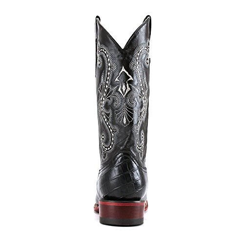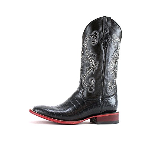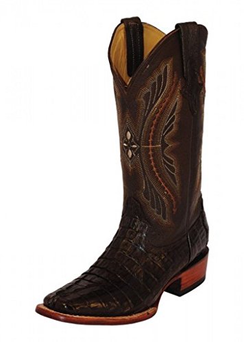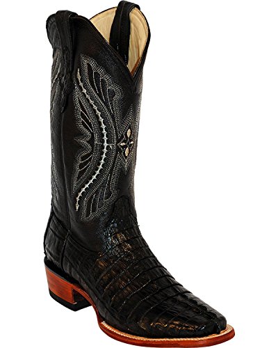 Studio : FERRINI USA INC Publisher : FERRINI USA INC Binding : Misc. Product Description Ferrini Mens Caiman Croc Tail Square Toe Boots Get stylish with these Ferrini Caiman Crocodile Tale black shoes for men. The cowboy styled boots feature Caiman tail croc leather foot under an embroidered shaft. Crafted from superior exotic, handmade leather, the embroidered shaft and cushioned insole provides maximum comfort and look chic. Adorned with quality leather lining and square toe profile, the boots have a comfortable fit. The single stitched welt and croc overlay at the pull straps further accentuates its classy look. The low block walking heel provides optimum support on rough surfaces. Product Features: Handmade from quality leather material. The cushioned insole provides optimum comfort. The embroidered shaft looks absolutely classy. The round toe profile has a better grip and fit. The croc overlay at pull straps looks superb. Item Specifications: Shaft Height: 13" 0