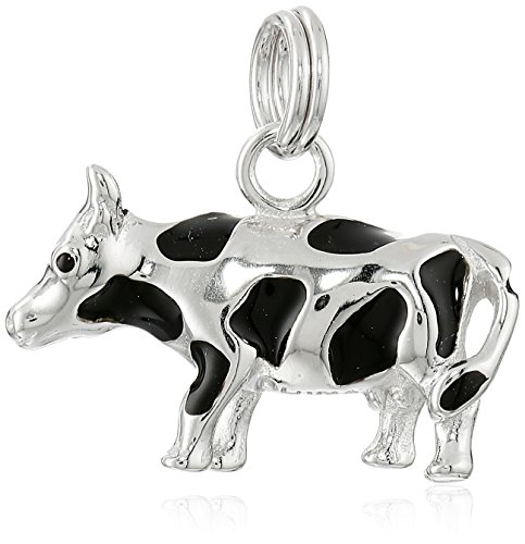 -. Title : Sterling Silver Enamel Cow Charm