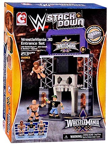 -. Binding : Toy -. Brand : WWE Stack Down Universe Building Toy Sets -. EAN : 0885135013886 -. Feature : Stackdown WrestleMania 30 Entrance Set -. Label : Bridge Direct -. LegalDisclaimer : Not responsible for children swallowing parts -. Manufacturer : Bridge Direct -. Model : 6546541 -. MPN : WWE-7183 -. PartNumber : WWE-7183 -. ProductGroup : Toy -. ProductTypeName : TOYS_AND_GAMES -. Publisher : Bridge Direct -. Studio : Bridge Direct -. Title : WWE Wrestling C3 Construction StackDown Playset WrestleMania 30 Entrance [with Daniel Bryan, John Cena & Batista Figures] -. UPC : 885135013886