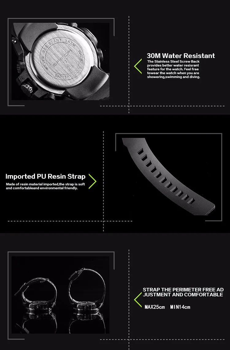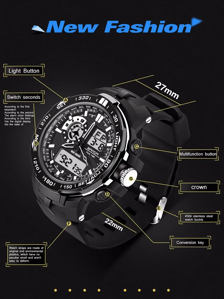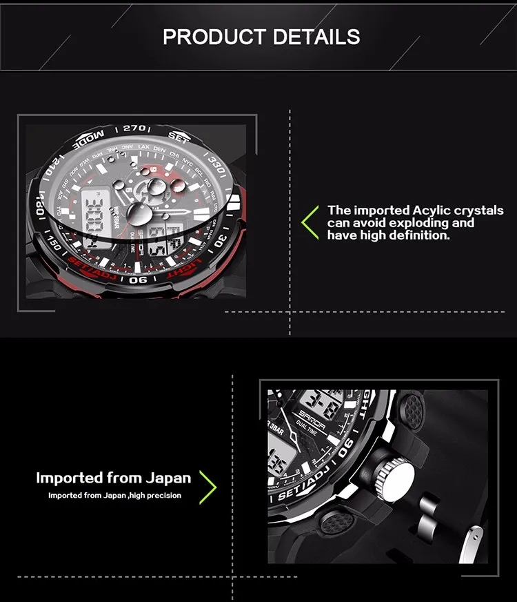 Movement:Japan Quartz + Digital movement relogios masculinos